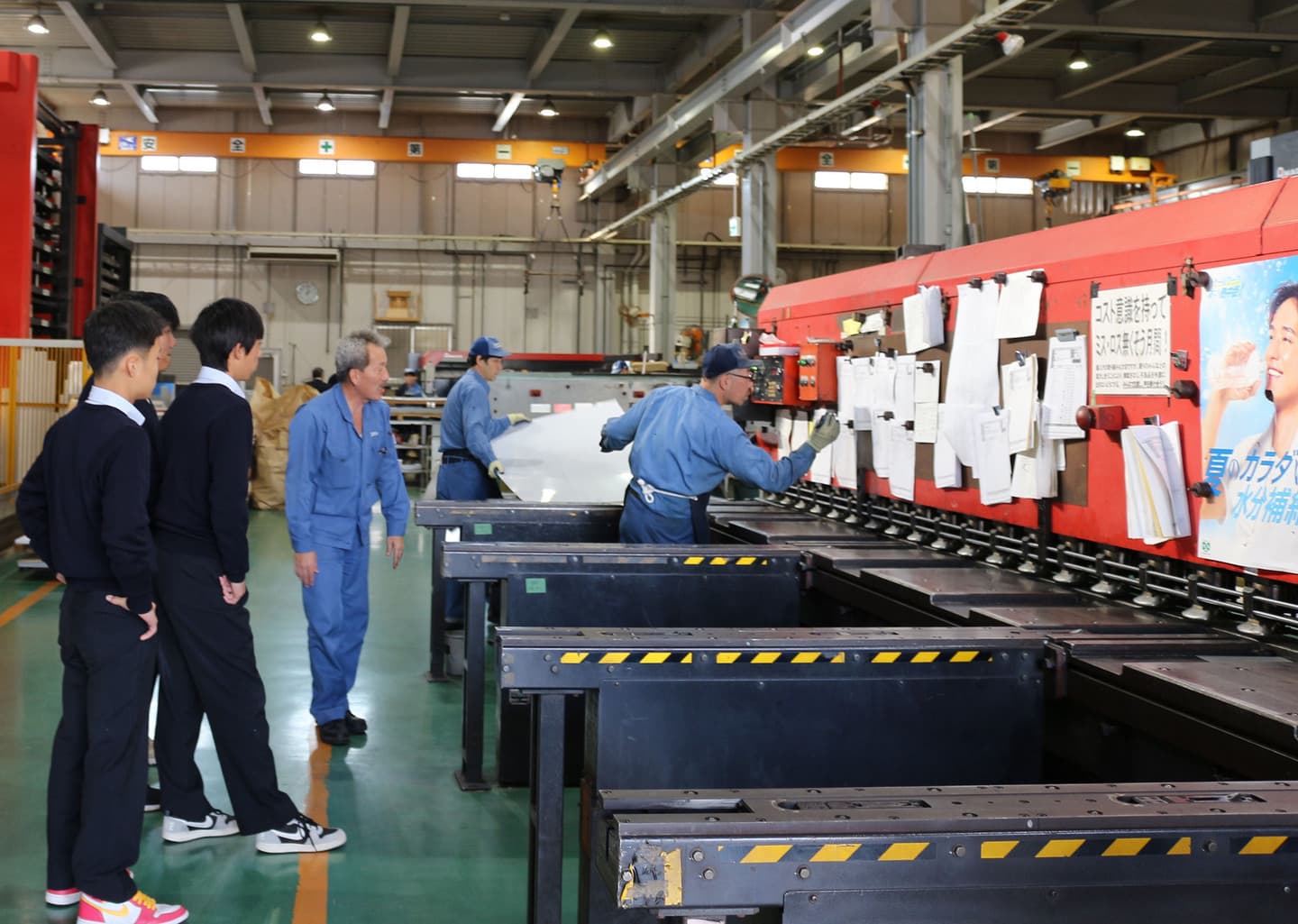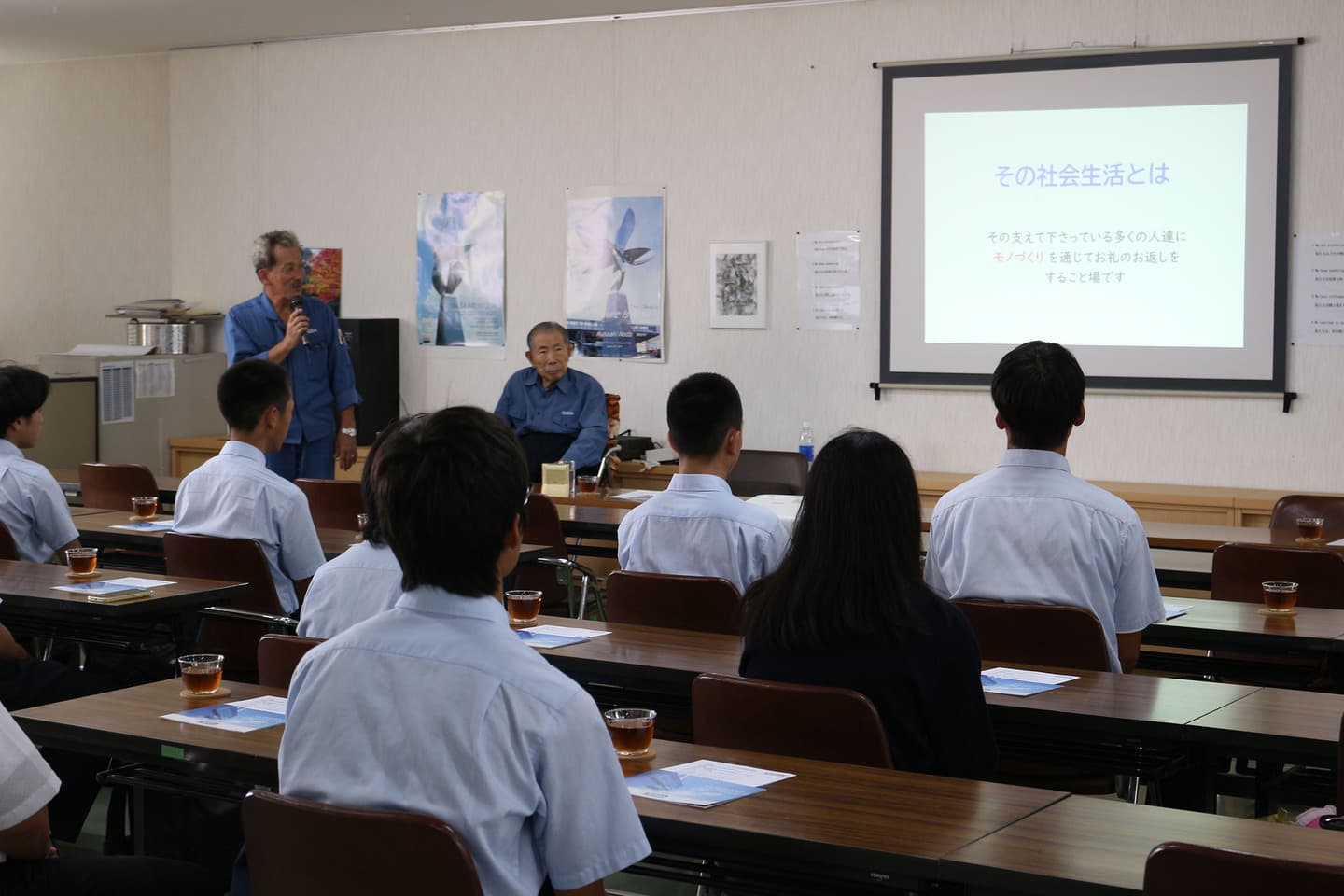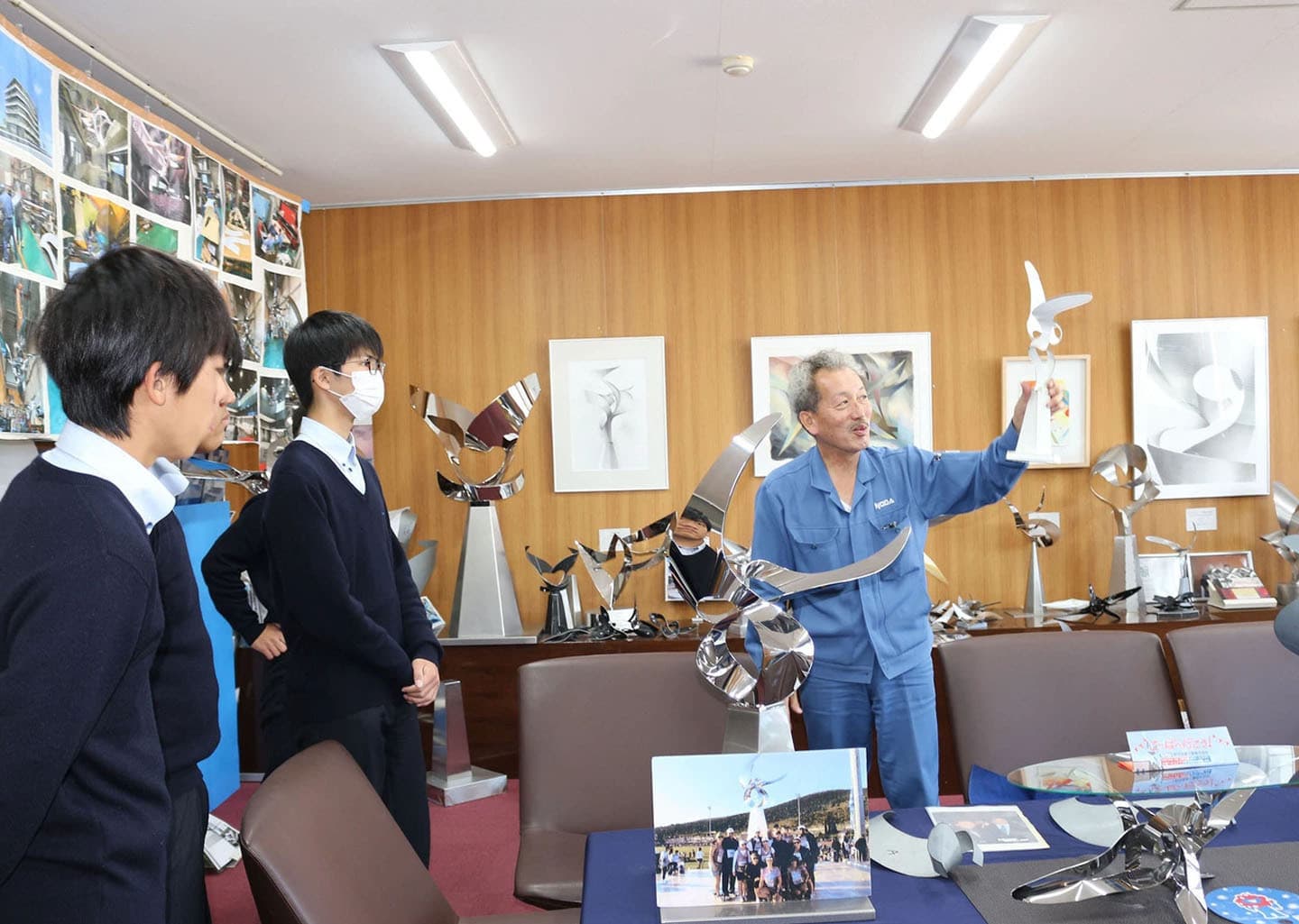 体験塾では2020年から、課題解決型学習「総合的な探究の時間」に協力しています。近隣の企業4社、株式会社excellent(新幹線等の鉄道車両部品)・株式会社繁原製作所(自動車用高精度歯車)・日新技研株式会社(産業・環境プラント用送風機)、野田金属工業株式会社(建築装飾金物・記念品・オブジェ)が城東工科高校の生徒さんを受け入れています。個性のある4社をまわって職場を見学し、色々な社長や企業の人たちから直接話を聞くことを通じて、自己のあり方やこれから自分はどうしていけば良いのかなど、自分の将来の事を考えるきっかけとなったり、就職の悩みも聞いてもらったりと役立っています。